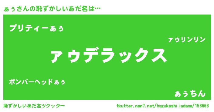 | ヒーロー風カッコイイあだ名 | 『ウルトラ戦士ァゥ』『スーパーァゥ』 |
