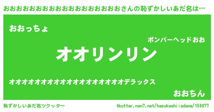 | 女子向けラノベタイトル風あだ名 | 『おおおおおおおおおおおおおおおおおおの卵を拾いまして』 |