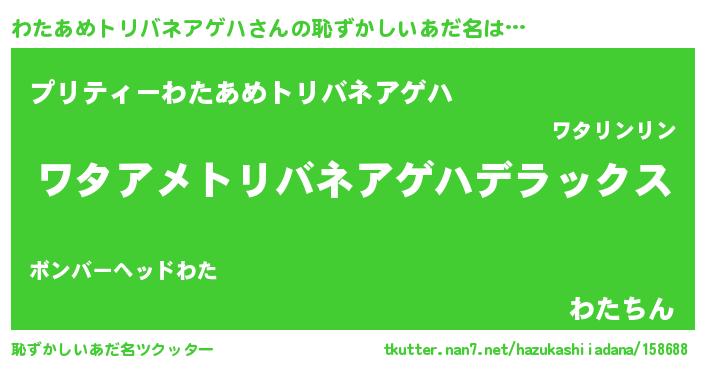 | ヘコむあだ名 | 『わたにー』『わたあめトリバネアゲハ(笑)』 |