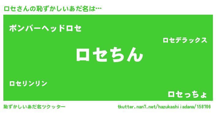 | ヘコむあだ名 | 『ロセ(爆)』『なまこ酢』『ロセっ子』 |