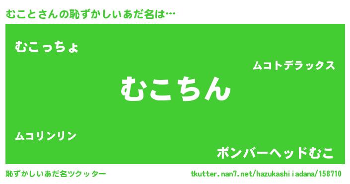 | 男性向けラノベタイトル風あだ名 | 『魔弾の王とむこと』『ムコトスレイヤー』 |