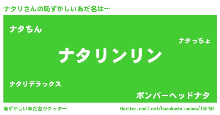 | ヘコむあだ名 | 『ナタ太郎』『ナタリ(小並感)』 |