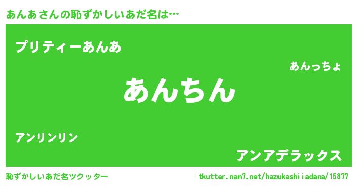 | ヘコむあだ名 | 『あんあ(遠い目)』『あんにゅー』 |