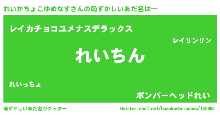 | 意味不明あだ名 | 『永久保存れいかちょこゆめなす』 |