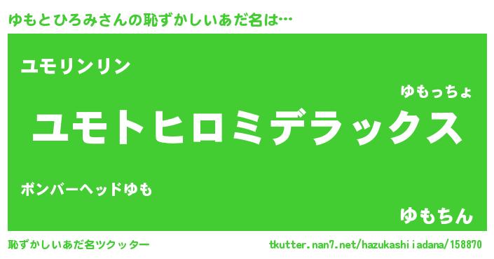 | ヒーロー風カッコイイあだ名 | 『最強戦士ユモトヒロミ』『黄金騎士ユモ』 |