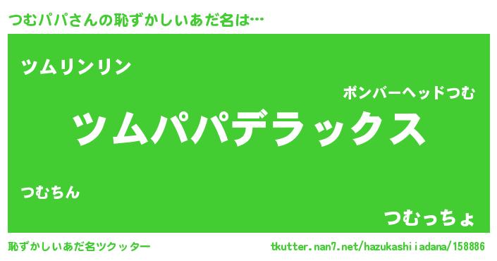 | 意味不明あだ名 | 『自称つむパパ』『めかぶ科つむパパ属』 |