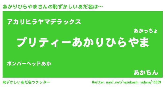 | 男性向けラノベタイトル風あだ名 | 『この素晴らしい世界にあかりひらやまを!』 |