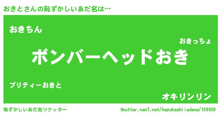 | ヒーロー風カッコイイあだ名 | 『慈愛の使者おきと』『ネオオキト』 |
