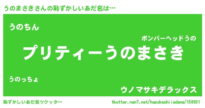 | ヘコむあだ名 | 『うのにゅー』『うのまさき(笑)』 |