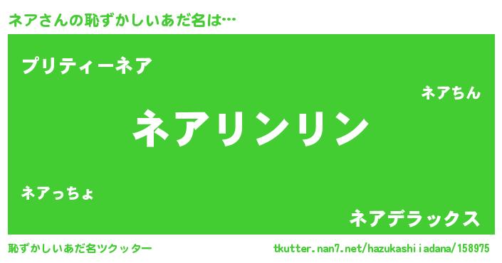 | ヘコむあだ名 | 『ネアを』『ネアふぇ~』『つくし』 |