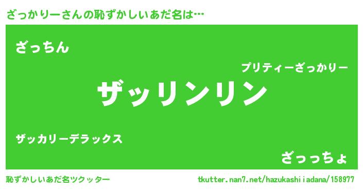 | ヘコむあだ名 | 『ざっっ子』『ざっかりー(小並感)』 |