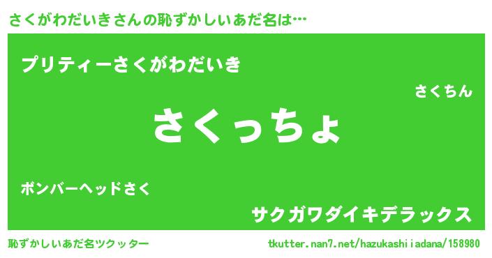 | 意味不明あだ名 | 『住所不定無職さくがわだいき(11歳)』 |