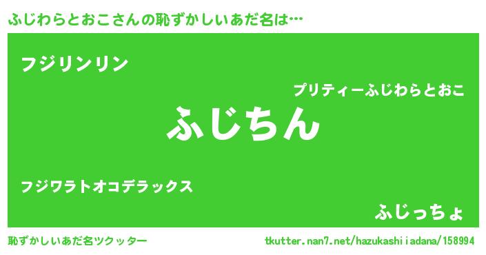 | 可愛いあだ名 | 『ふじわらとおこママ』『ふーみん』 |