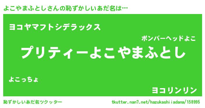 | 胡散臭い通販商品みたいなあだ名 | 『モテモテ間違いなし水晶球…その名も「よこやまふとし」』 |