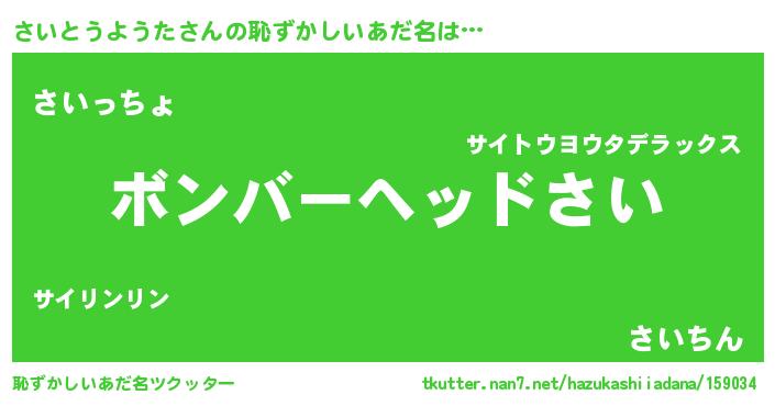 | 意味不明あだ名 | 『住所不定無職さいとうようた(3歳)』 |