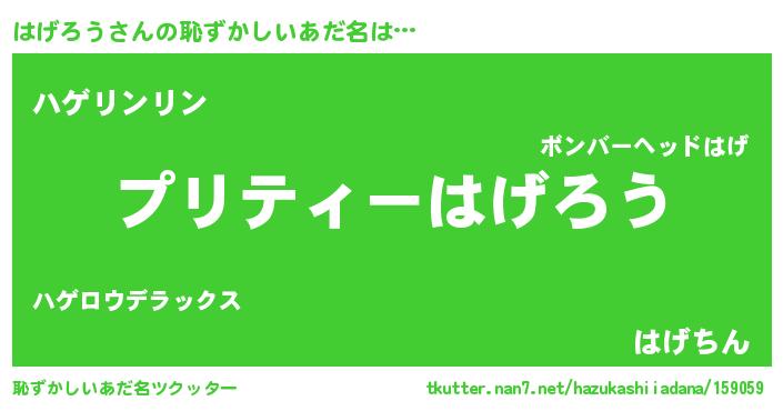 | 意味不明あだ名 | 『ペロリンはげろう』『永久保存はげろう』 |