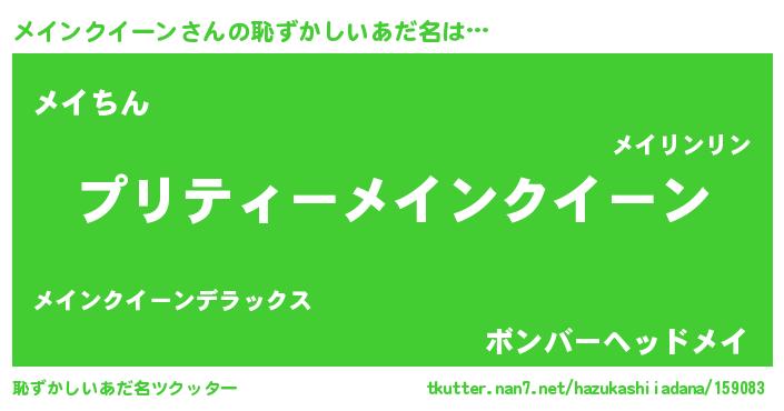 | ヘコむあだ名 | 『メイっふぃ~』『メインクイーン(小並感)』 |