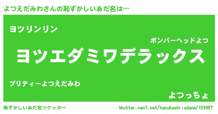 | 意味不明あだ名 | 『自称よつえだみわ』 |