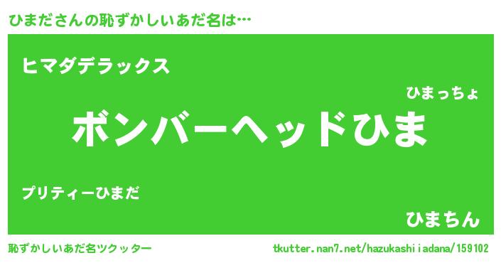 | ヒーロー風カッコイイあだ名 | 『天空の使者ひまだ』『仮面ヒマダー』 |