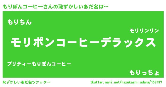 | 男性向けラノベタイトル風あだ名 | 『Re:もりぽんコーヒーから始める異世界生活』 |