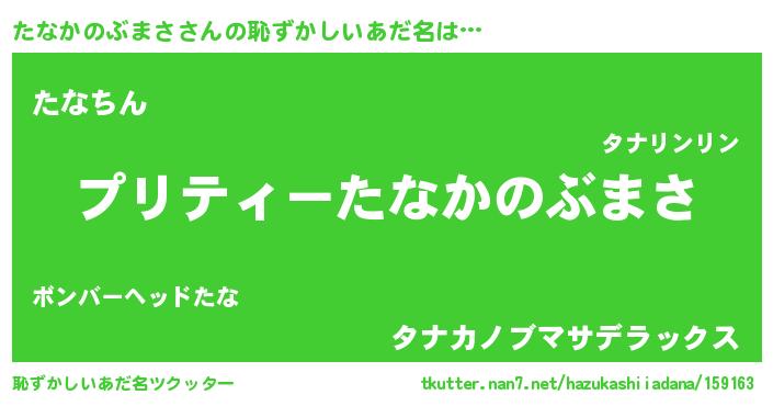 | 可愛いあだ名 | 『たんたん』『たなかのぶまさママ』 |