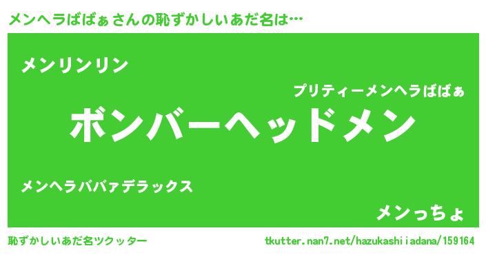 | ヘコむあだ名 | 『メンっちょ』『牛乳』『メンにゅー』 |