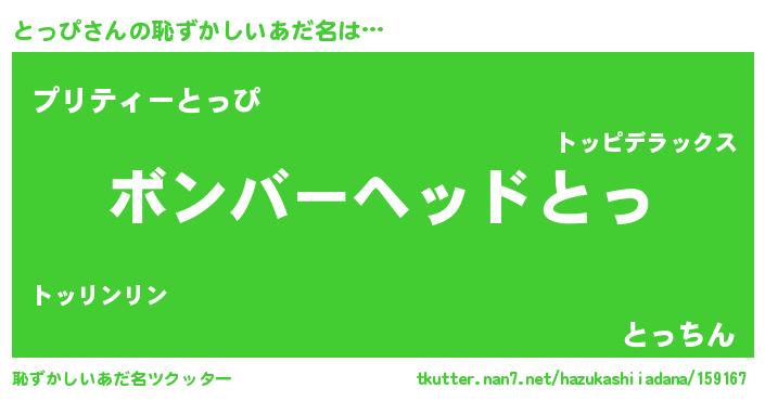 | ヒーロー風カッコイイあだ名 | 『慈愛の使者とっぴ』『スーパートッピ』 |