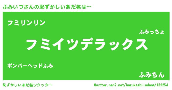 | 男性向けラノベタイトル風あだ名 | 『Re:ふみいつから始める異世界生活』 |