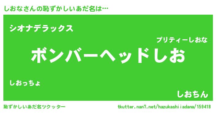 | ヘコむあだ名 | 『しおな(笑)』『しおにー』『つくし』 |