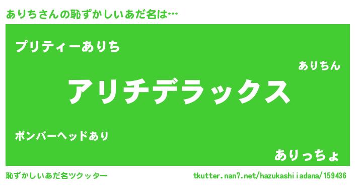 | ヘコむあだ名 | 『ありにー』『つくし』『ありち(笑)』 |