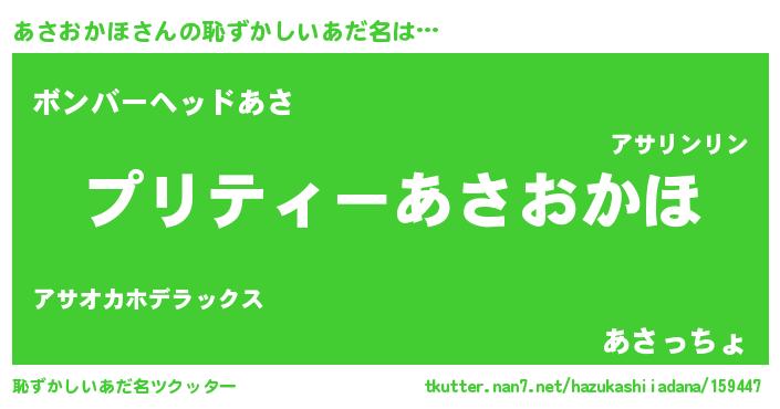 | 意味不明あだ名 | 『ペロリンあさおかほ』『自称あさおかほ』 |