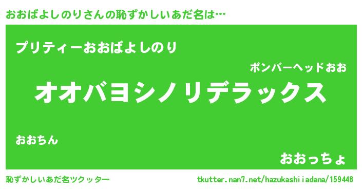 | 男性向けラノベタイトル風あだ名 | 『うちのおおばよしのりが世界を掌握している!』 |