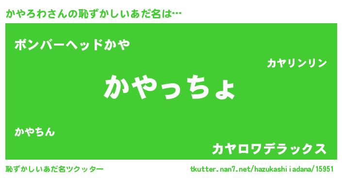 | ヘコむあだ名 | 『豆乳』『かやっちょ』『かやふぇ~』 |