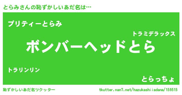 | ヘコむあだ名 | 『とらもー』『酢こんぶ』『とらっ子』 |