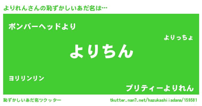 | ヘコむあだ名 | 『よりれん(小並感)』『よりっふぃ~』 |