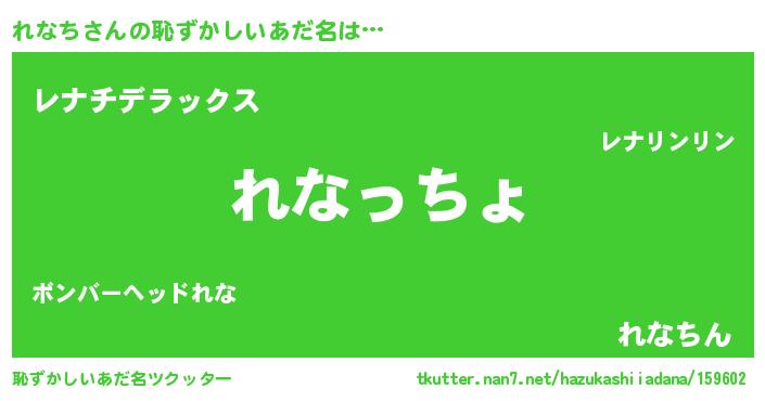 | ヒーロー風カッコイイあだ名 | 『ウルトラれなちマン』『最強戦士レナチ』 |