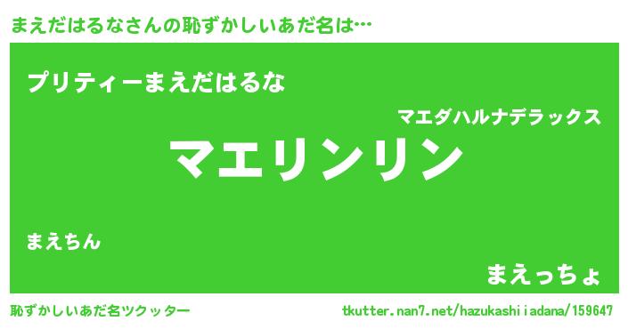 | 意味不明あだ名 | 『とにかく怪しいまえだはるな』 |