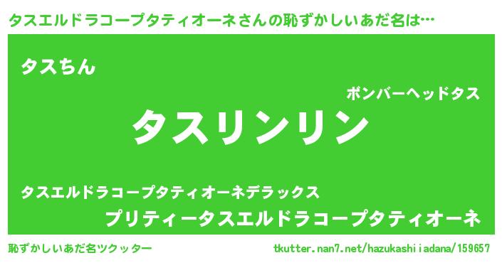 | 男性向けラノベタイトル風あだ名 | 『ダンジョンにタスエルドラコープタティオーネを求めるのは間違っているだろうか』 |