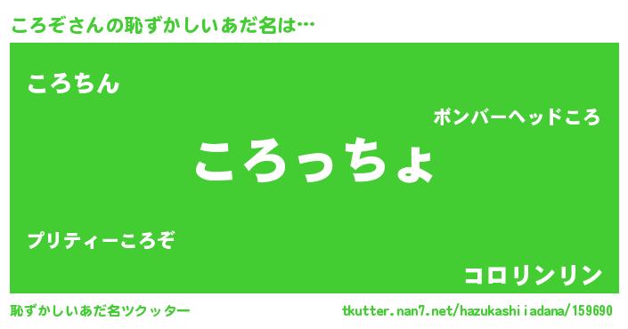 | 意味不明あだ名 | 『ころぞフォーエバー』『永久保存ころぞ』 |