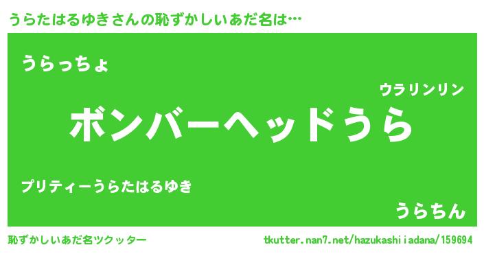 | 男性向けラノベタイトル風あだ名 | 『おまえをオタクにしてやるから、俺をうらたはるゆきにしてくれ! 』 |