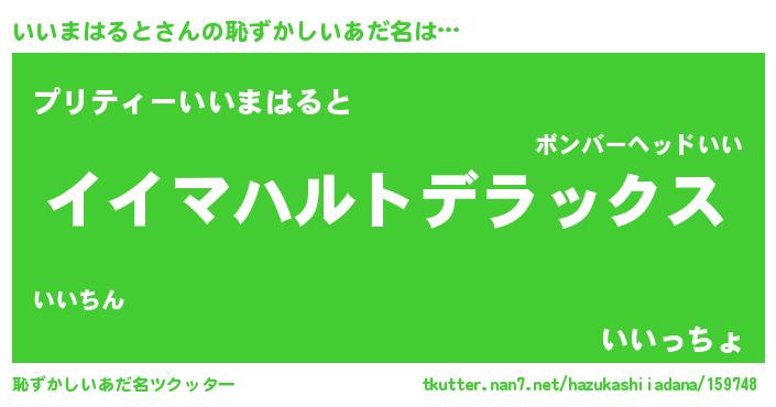 | 男性向けラノベタイトル風あだ名 | 『Re:いいまはるとから始める異世界生活』 |
