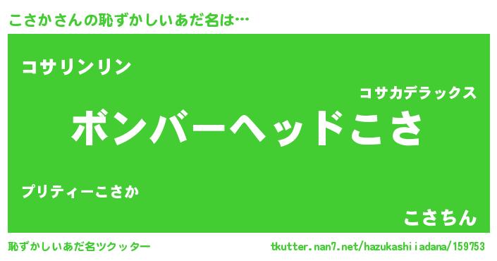 | 男性向けラノベタイトル風あだ名 | 『この素晴らしい世界にこさかを!』 |