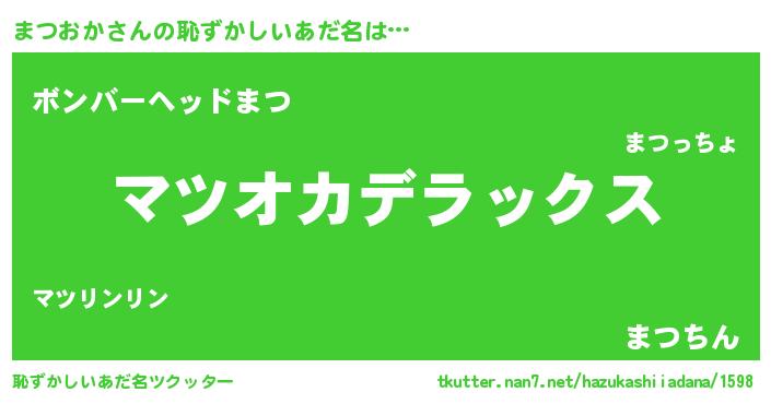| 意味不明あだ名 | 『自称まつおか』『永久保存まつおか』 |