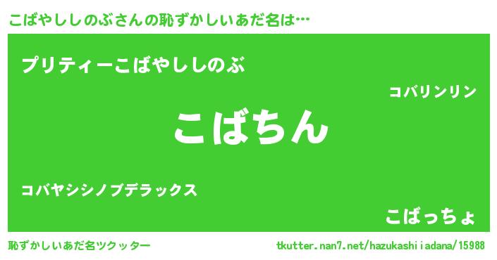 ヘコむあだ名 | 『こばやししのぶ(苦笑)』『こばもー』 |