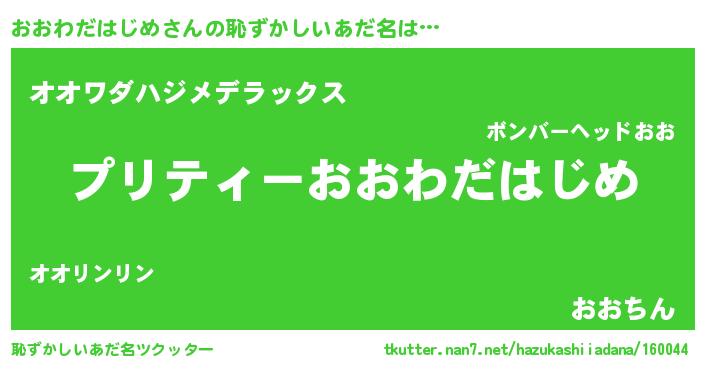 | 欧米人風あだ名 | 『おおわだはじめ・ステッグマイヤー』 |