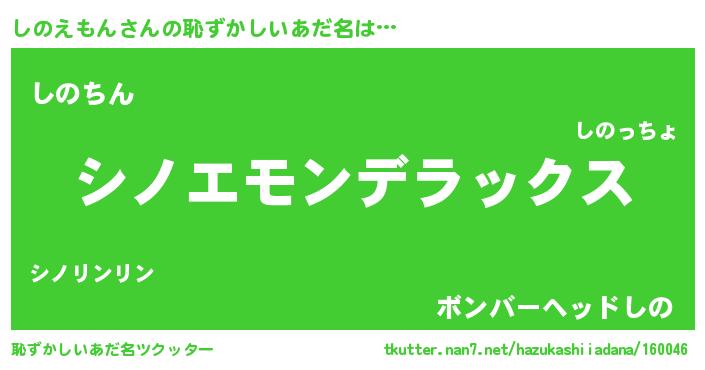 | 男性向けラノベタイトル風あだ名 | 『シノエモンスレイヤー』 |