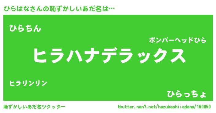| 意味不明あだ名 | 『自称ひらはな』『永久保存ひらはな』 |
