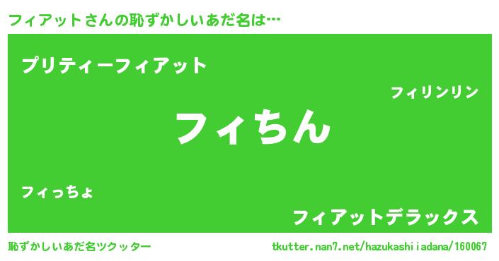 | ヘコむあだ名 | 『フィアット(震え声)』『フィにー』 |