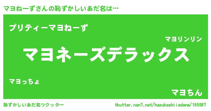 | ヘコむあだ名 | 『マヨにゅー』『マヨねーず(爆)』 |