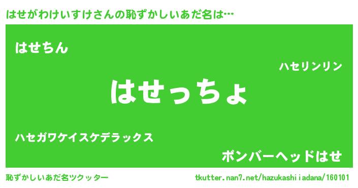 | 意味不明あだ名 | 『はせがわけいすけフォーエバー』 |